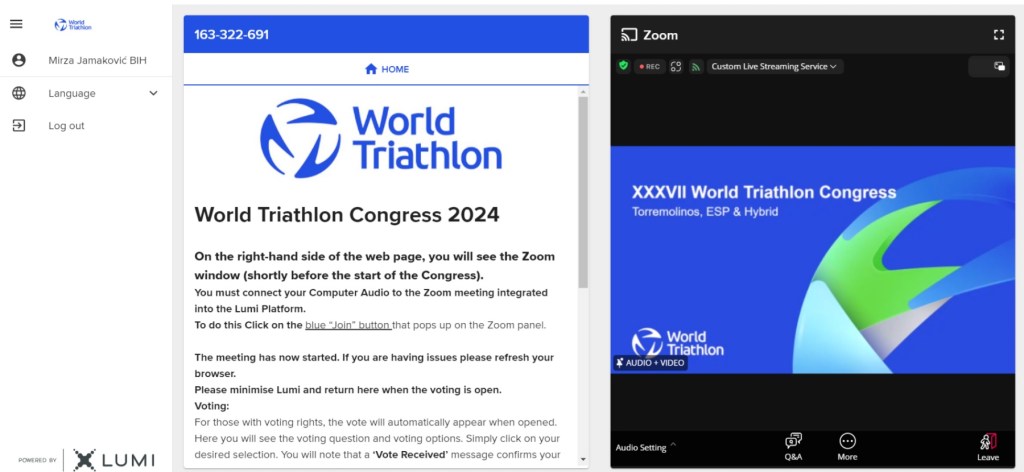 Kao punopravni član World Triathlona, Triathlon i pentatlon savez BiH je predstavljao i učestvovao u glasanju predsjednik Upravnog odbora g-din Mirza Jamaković